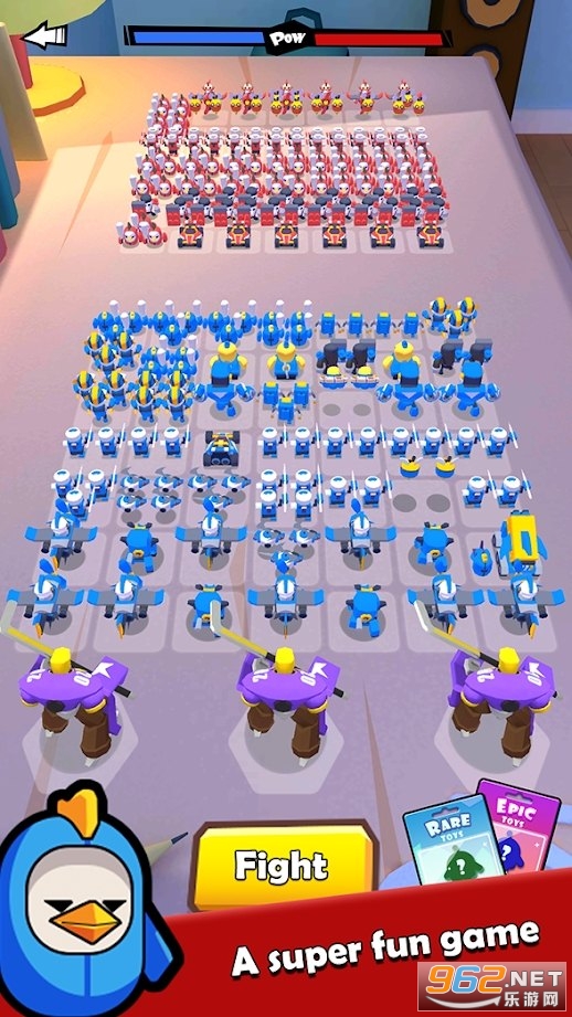1、组建玩具大军战胜对手,等级越高,战斗力越强,打败的人越多。
