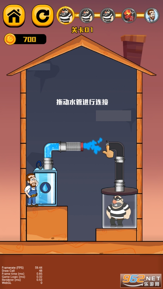 关卡的挑战难度随着你通关的次数来决定的,并且在关卡挑战过程中,你要不断的去观察摸索,怎么样才能最快的将水引带坏人房间,这次是最重要的一点。