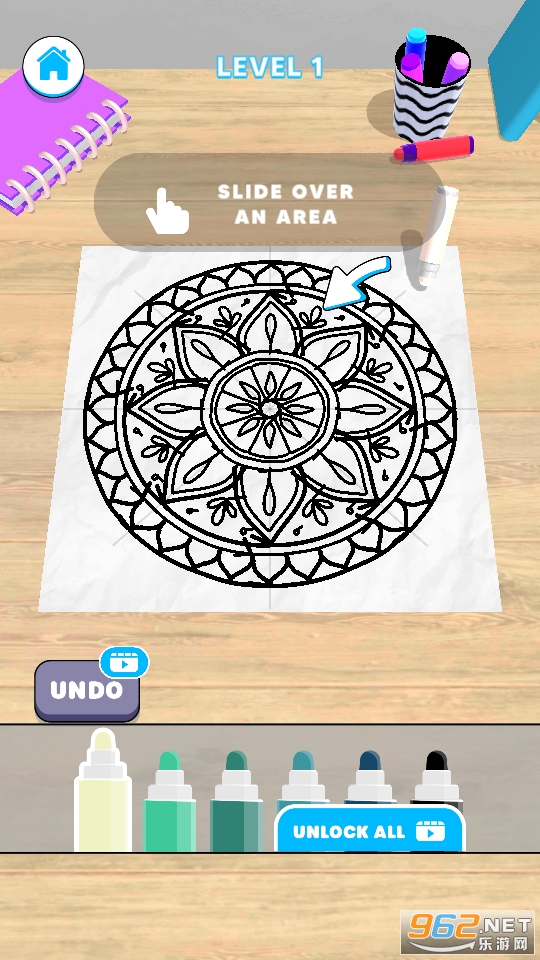 3.曼荼罗大师的游戏笔触和油漆桶的混合使用,增加了颜色填充的可玩性,使它更容易创建您喜欢的作品。