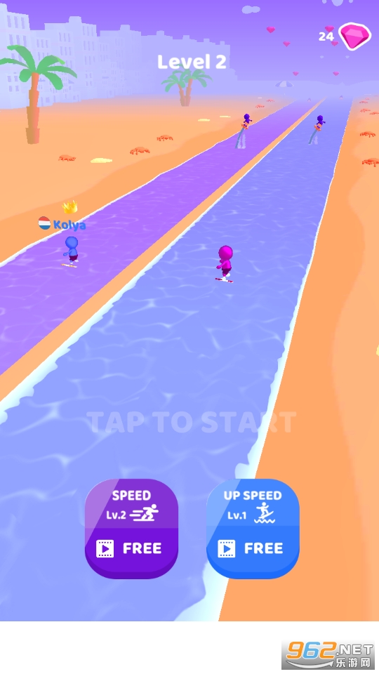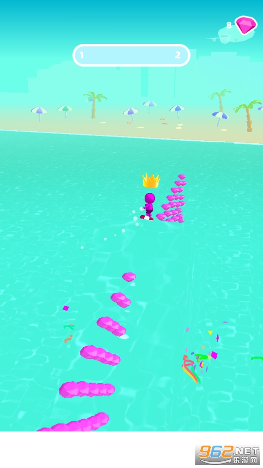 一款以竞速冲浪玩法为核心的休闲游戏,玩家在游戏中需要操纵着角色来一场冲浪比拼,只有以最快的速度到达终点才能够获得胜利。躲避沿途的所有危险,提升角色的速度实力,玩家在游戏中可以自由的进行海上冲浪,多种有意思的玩法,收集更多的钻石以最快的速度到达终点吧!