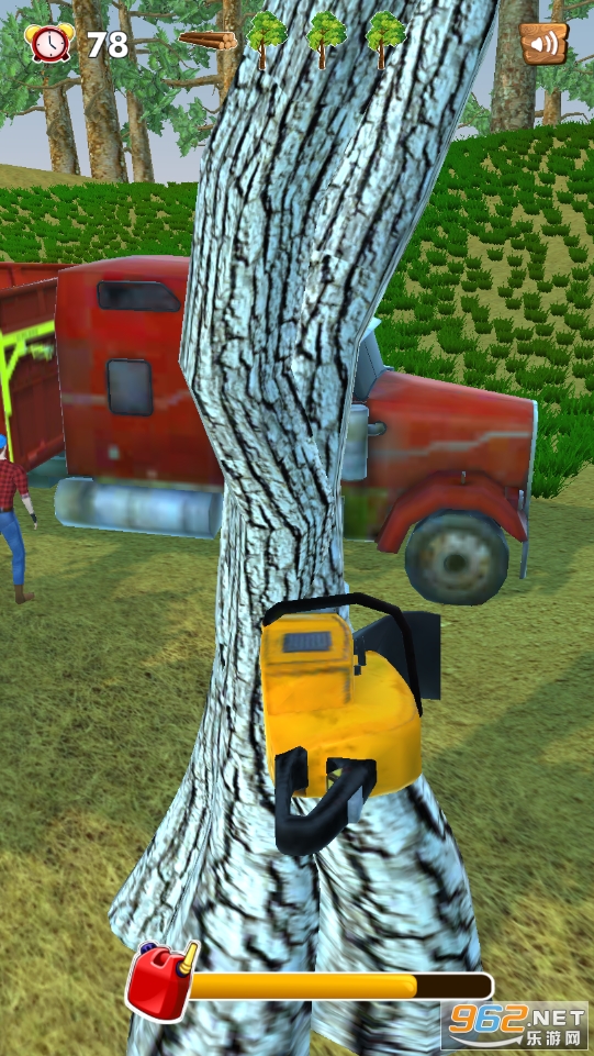 玩家们需要不断的砍伐树木来延长时间哦,每台锯子里面油都是有限的,要注意使用