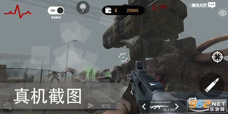 人类的血肉之躯在练练惨败后,人类共同研发了三款末日机甲,你将作为天选之人驾驶强大的机甲和尸潮决一死战!PS:你也可以试着在城市中搞破坏,任何建筑都可以被你摧毁