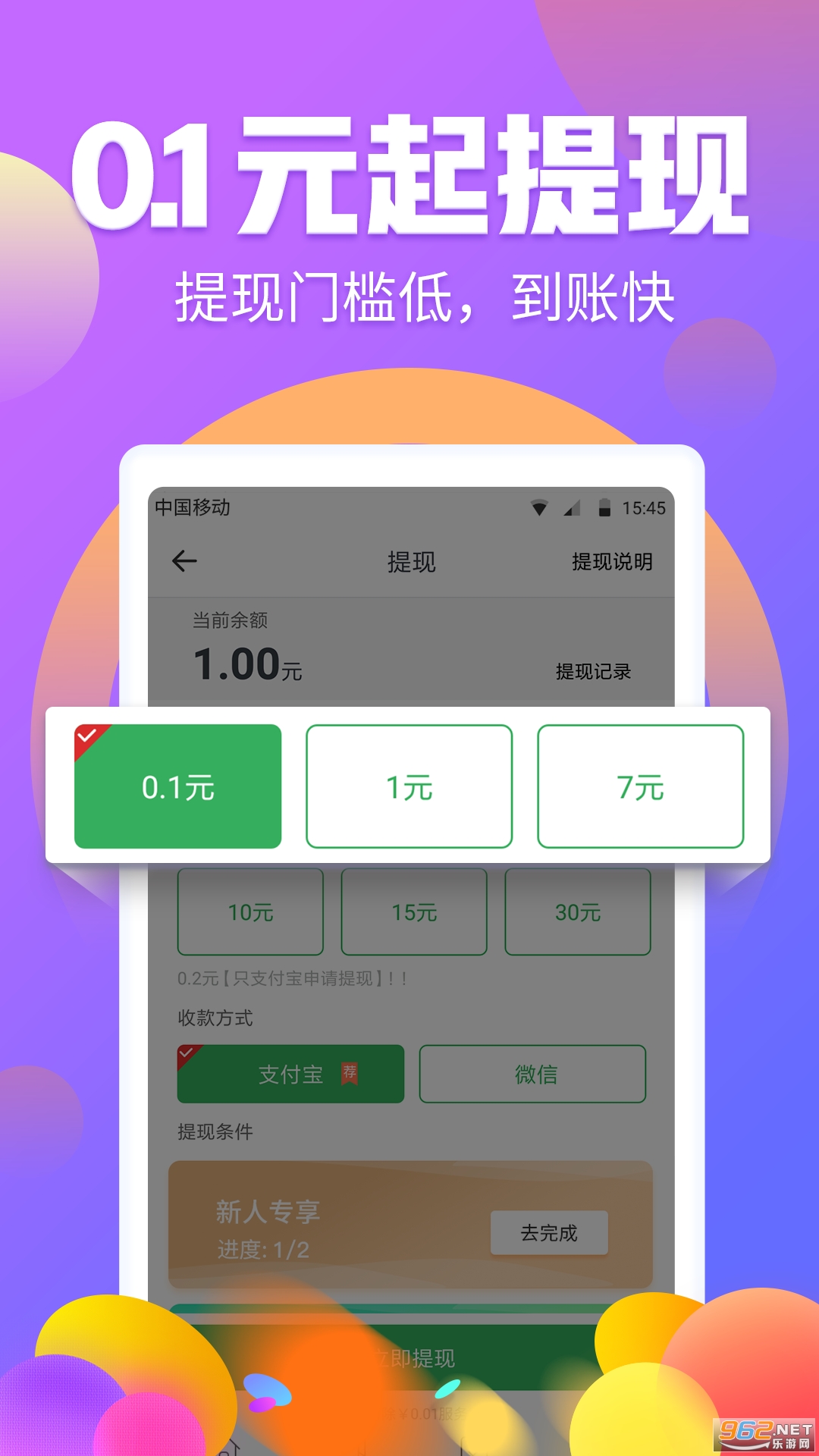 1、超速度,提现秒到账。人人能赚到,手到钱就来。