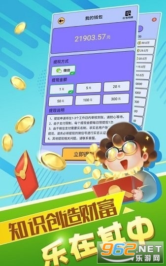 《答题达人红包版》是一款好玩有趣的手机答题赚钱平台,这里拥有海量的关卡等你来挑战,通过一边答题一边赚零花钱,正确率越高奖励越好,提现也方便,感兴趣的朋友欢迎来962下载吧!