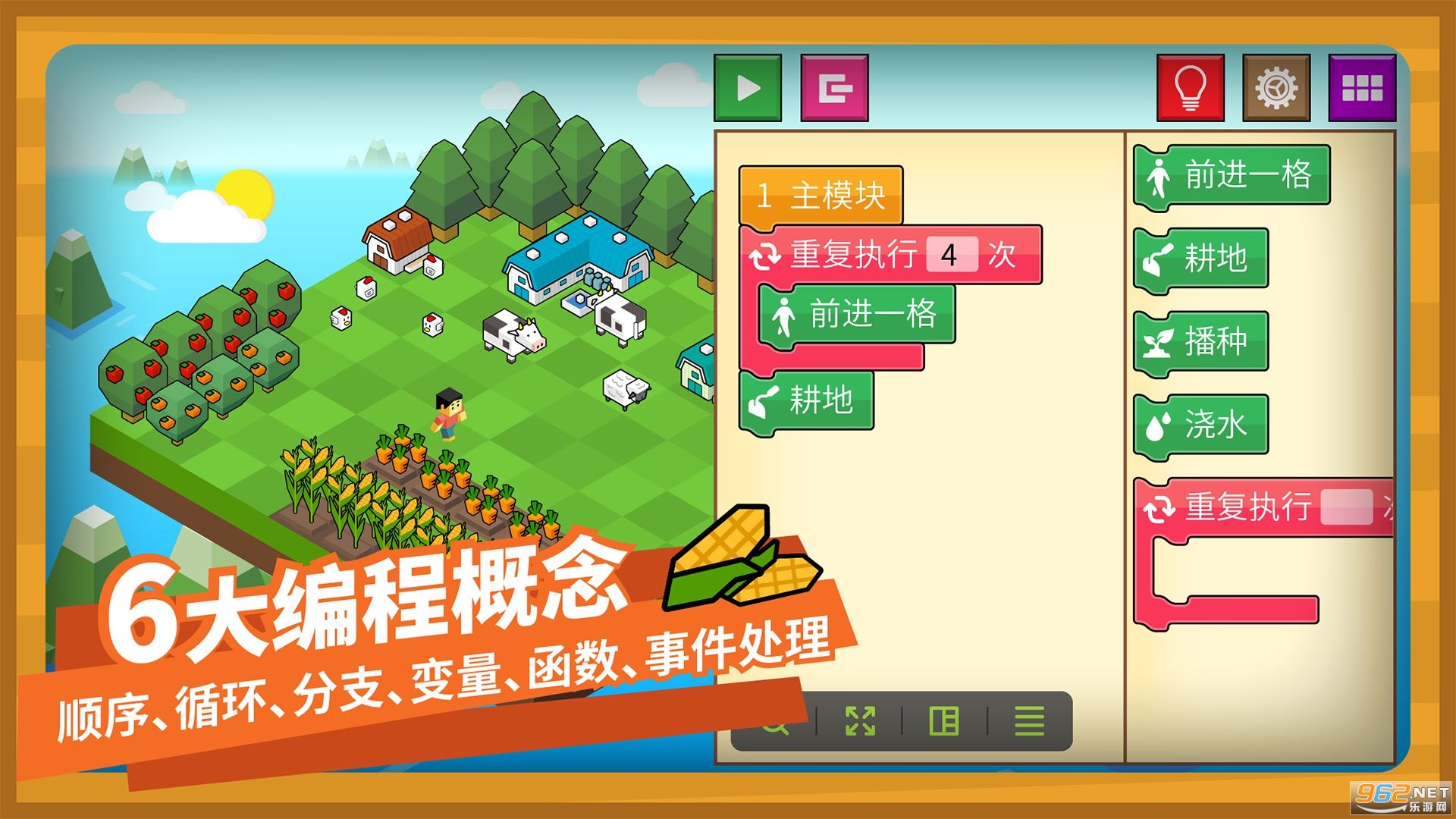 一款结合了编程训练的寓教于乐游戏,在这里你将进行一个个有趣的可视化变成同时使用各种动画效果来体现你的运行结果。同时游戏中还有着丰富的农业知识科普,让你培养出变成思维,推荐给喜欢休闲游戏的玩家。