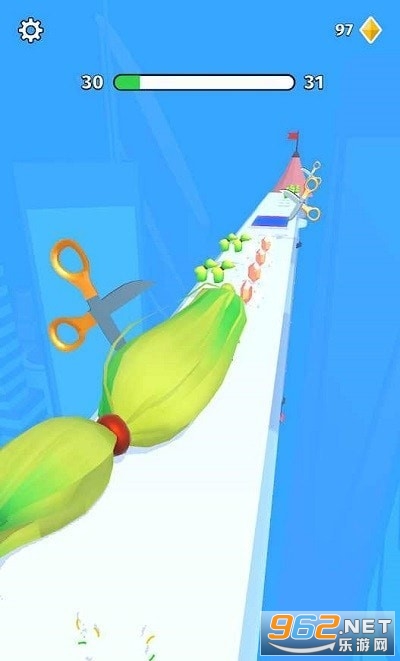 3、躲避前方变换不定的剪刀完成躲避的操作,这样也可以让你成功到达终点。