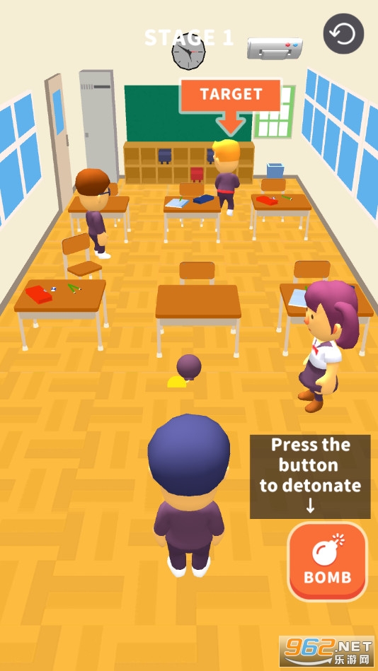 趣味的闯关游戏,在游戏中你可以利用炸弹去轰炸你讨厌的人,发泄自己压抑的情绪,玩法简单,点击滑动屏幕可以调整炸弹的抛投地点,可以进行引爆,喜欢的朋友可以下载试试。