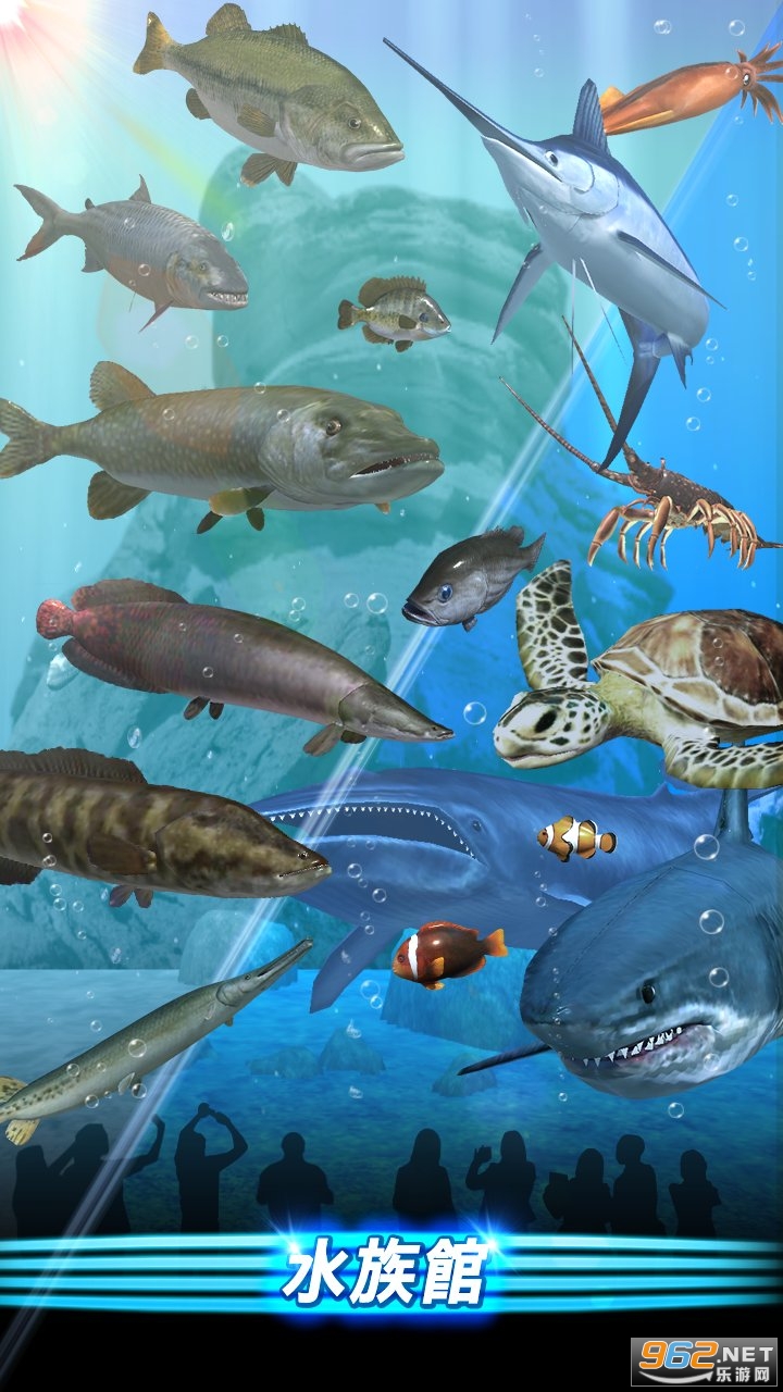 与逼真的3D鱼类战斗,包括从美丽的热带鱼到鲨鱼!