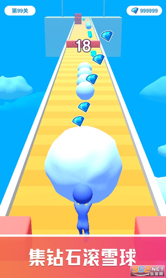 你需要在游戏中躲避路途上的障碍,收集物品使你手中的雪球越来越大。