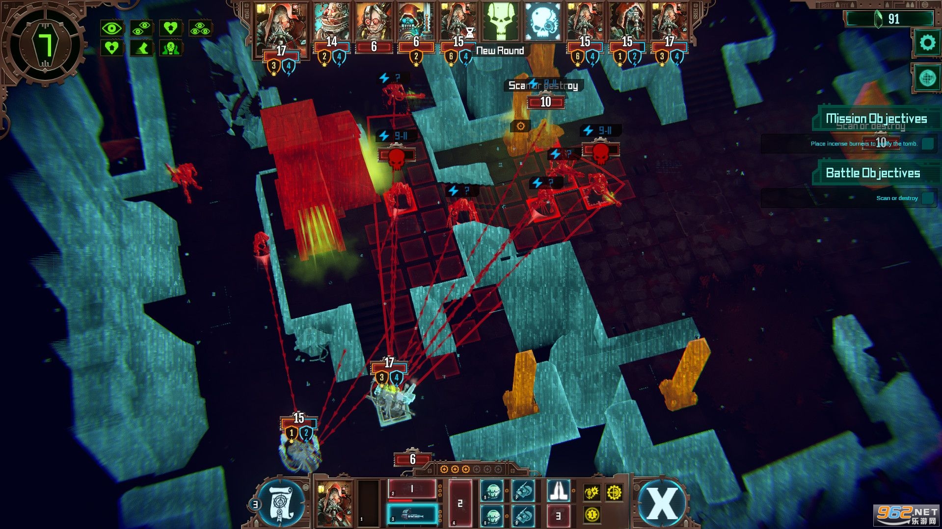 使用机械神教进化后的人类知觉来扫描未经探索的墓穴,以获取有价值的数据,从而获得对敌的战术优势。