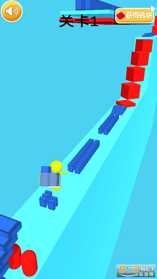 收集与小人颜色一样的砖块,如果碰到其他颜色的方块会消减已收集到的方块的数量;