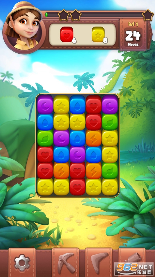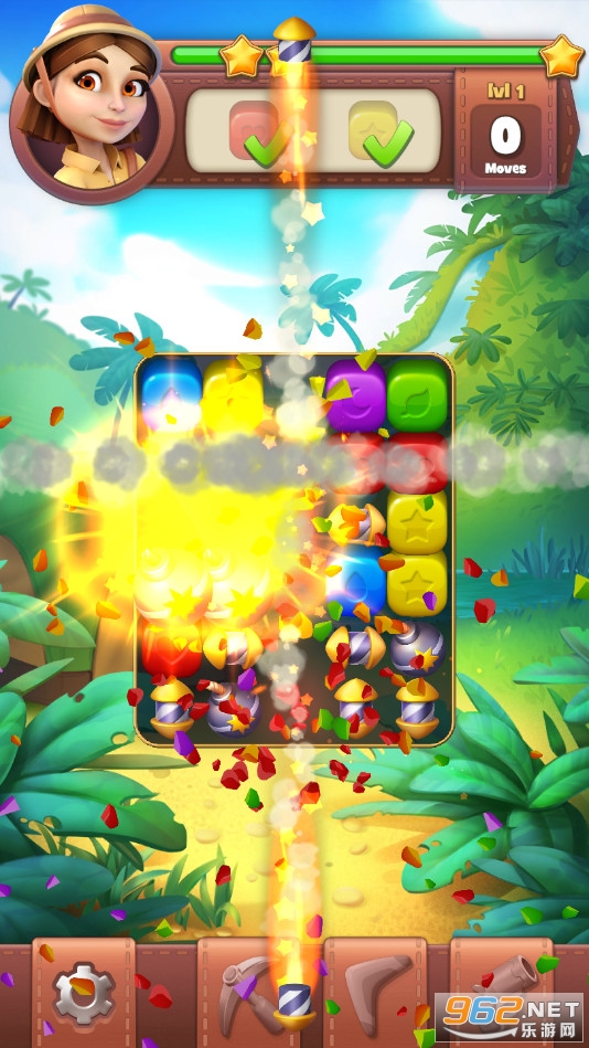《寻宝爆炸安卓版》(Treasure Quest Blast)是一款画面清新的采用二消玩法的闯关休闲手游,游戏有着数百的关卡,每个关卡会有着一些目标方块需要收集,玩家需要在规定的步数内完成挑战,合理的点击一些方块进行消除,完成三星评分。