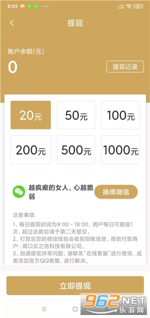 3、白虎网满20元起提现到钱包,24小时内审核到账,每人每天限提一次