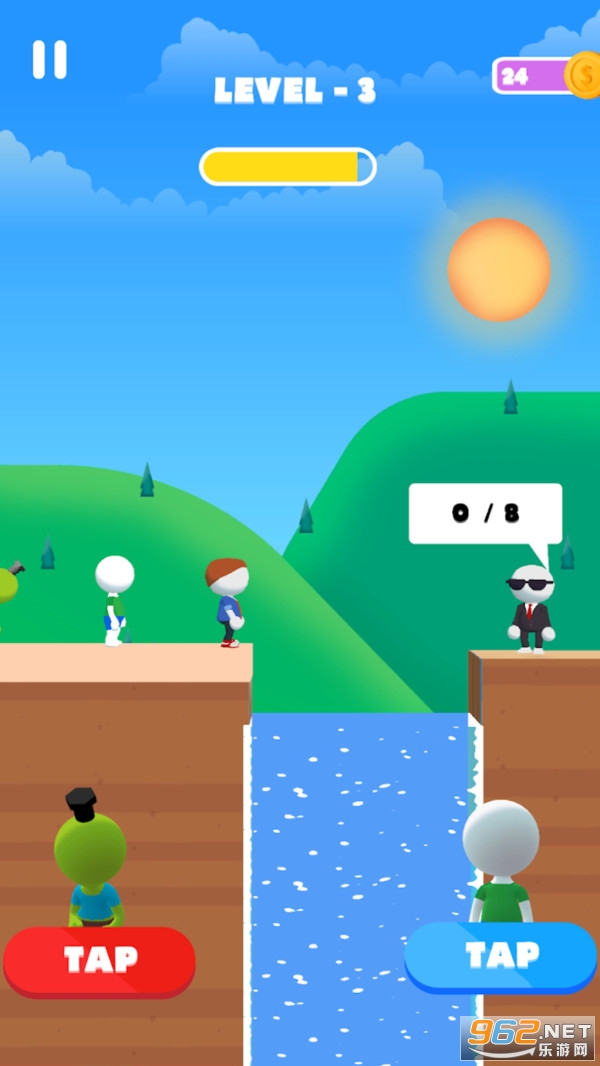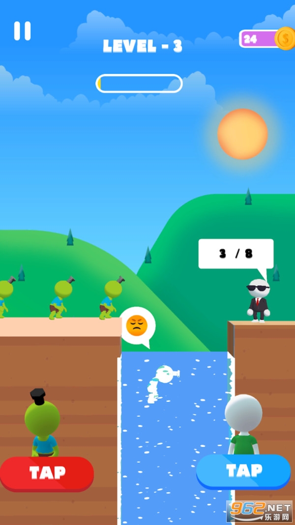 非常考验眼力的休闲闯关游戏,玩家们将需要分辨好人和坏人,帮助好人成功过河,让坏人掉入水中,简单的点击操作,控制你的特工角色出脚攻击,无比魔性的游戏模式,每个关卡还有着时间的限制。