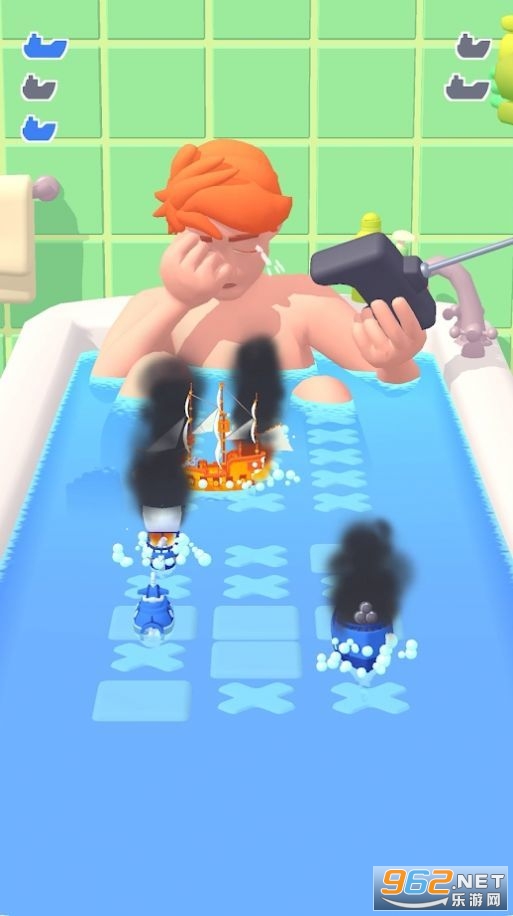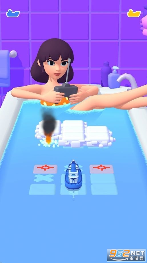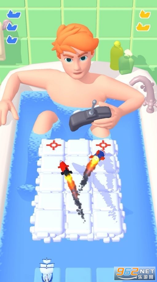 游戏内的场景是非常小的,就是在一个浴缸内进行的游戏,玩家进行操作,能够很清楚的看到地方的位置,这个时候拼的就是你的船的反应速度了,反应慢了船身被击中,那么就意味着你游戏结束了,对方获得最终的游戏胜利!
