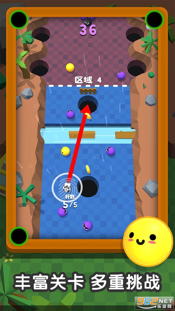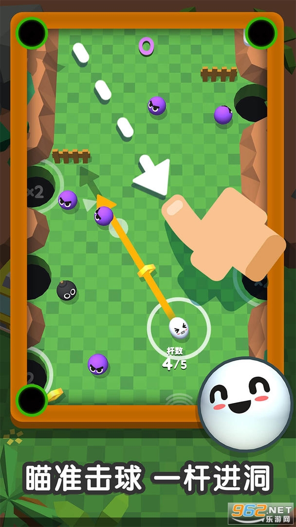 《一杆进洞手机游戏》是一款以桌球玩法为内核,融合了冒险闯关的休闲小游戏。操作简单易上手,熟悉的桌球规则,丰富的地图关卡,玩法大不同,乐趣加倍!