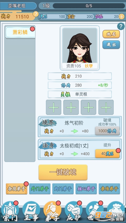 趣味的修仙门派经营游戏,玩家可以创建门派,招纳弟子,可以进行炼丹炼气,不断提高弟子实力,可以前往其他门派进行挑战,吞并其他门派等,喜欢的朋友可以下载试试。