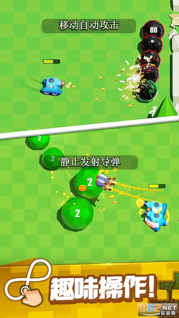 一款非常经典的休闲游戏,操控坦克位移攻击目标,要将出现在画面内的所有敌对目标击败成功通关,这样你就可以从游戏商城中购买好看的皮肤来装饰自己,也可以升级你的坦克来让自己变得更加好看,更有丰富的玩法等你开发。