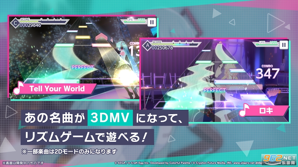 3.游戏玩法方面採用经典的上而下音乐玩法,透过点击、滑动等操作打出音乐节奏 COMBO,但考虑到歌曲本身给人的印象有些歌曲将採 2DMV 的形式来表现.