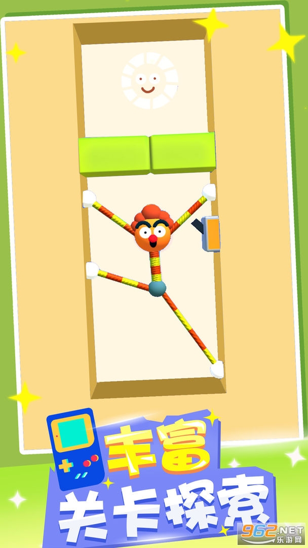 橡皮人快跑是一款简单的休闲益智游戏。玩家通过点击橡皮人的四肢在墙体上小心移动或拿放道具来到达目标位置,同时还要观察橡皮人脸部表情来避免四肢过度伸展和触碰到陷阱将可怜的橡皮人四肢撕开!玩法简单易上手,关卡丰富有趣味,橡皮人为了目的做出各种让人惊叹的高难度动作和痛苦的表情让人捧腹大笑,而又容易不小心伸展过度或碰到陷阱被四分五裂让人哭笑不得!