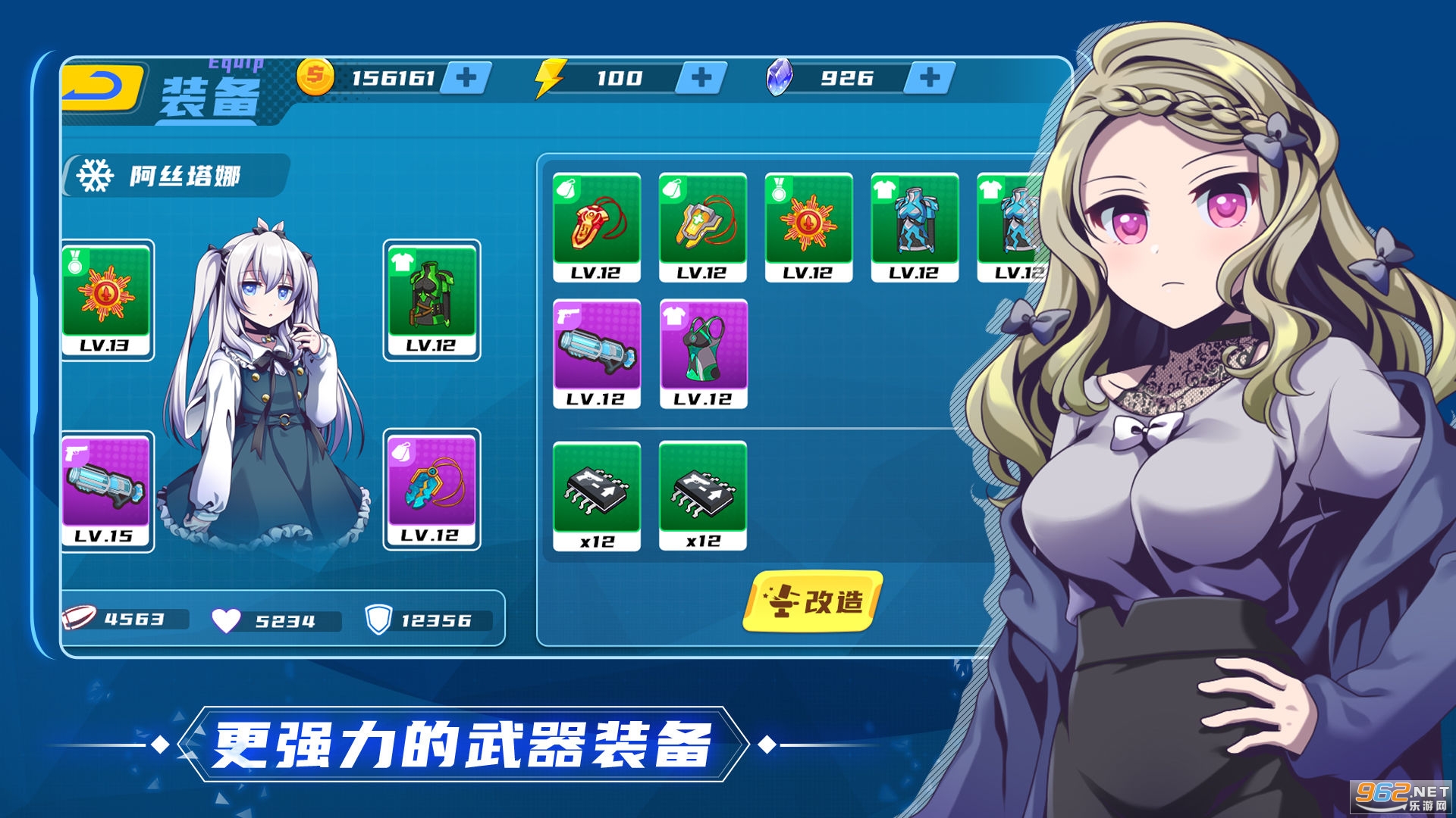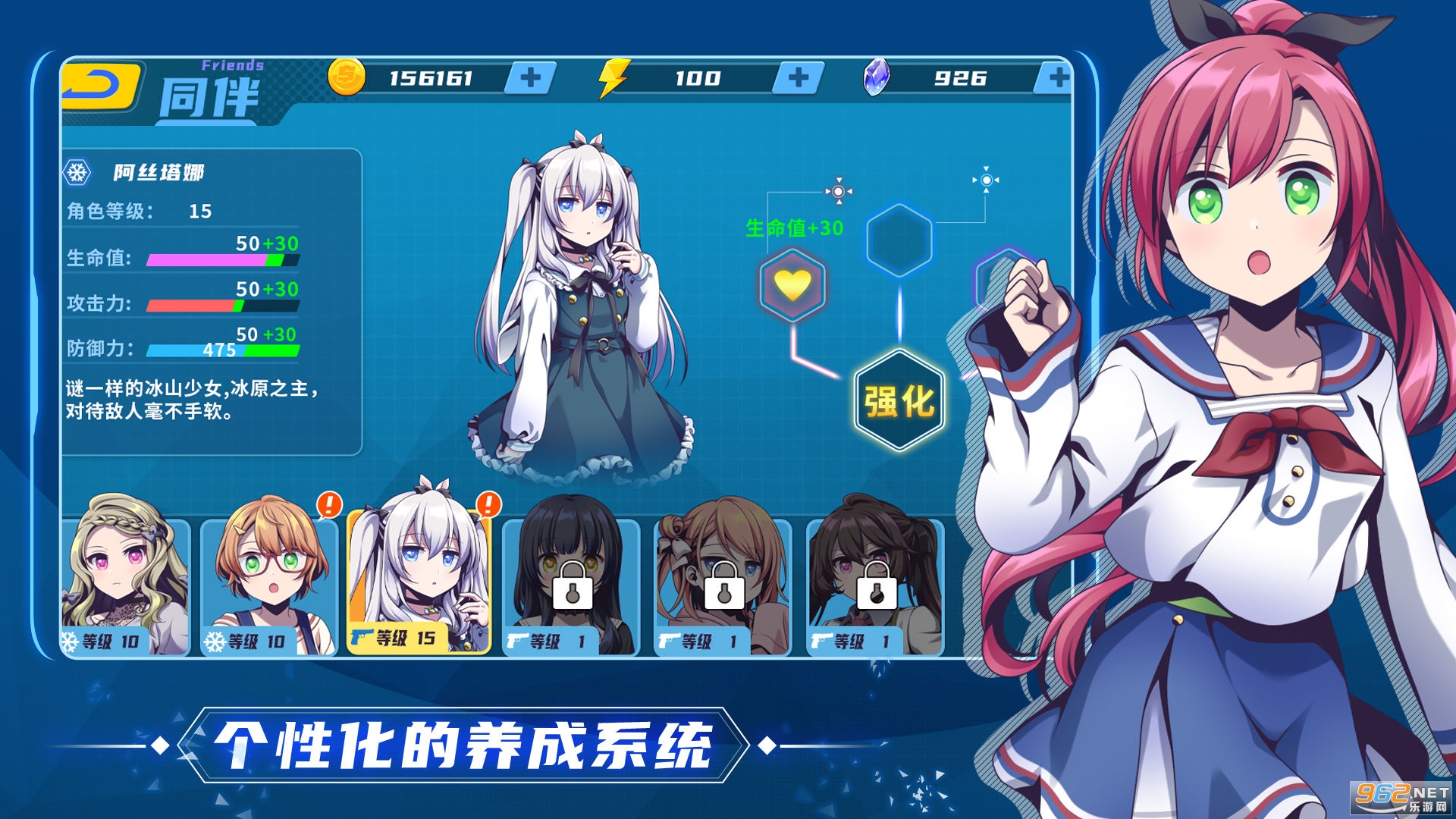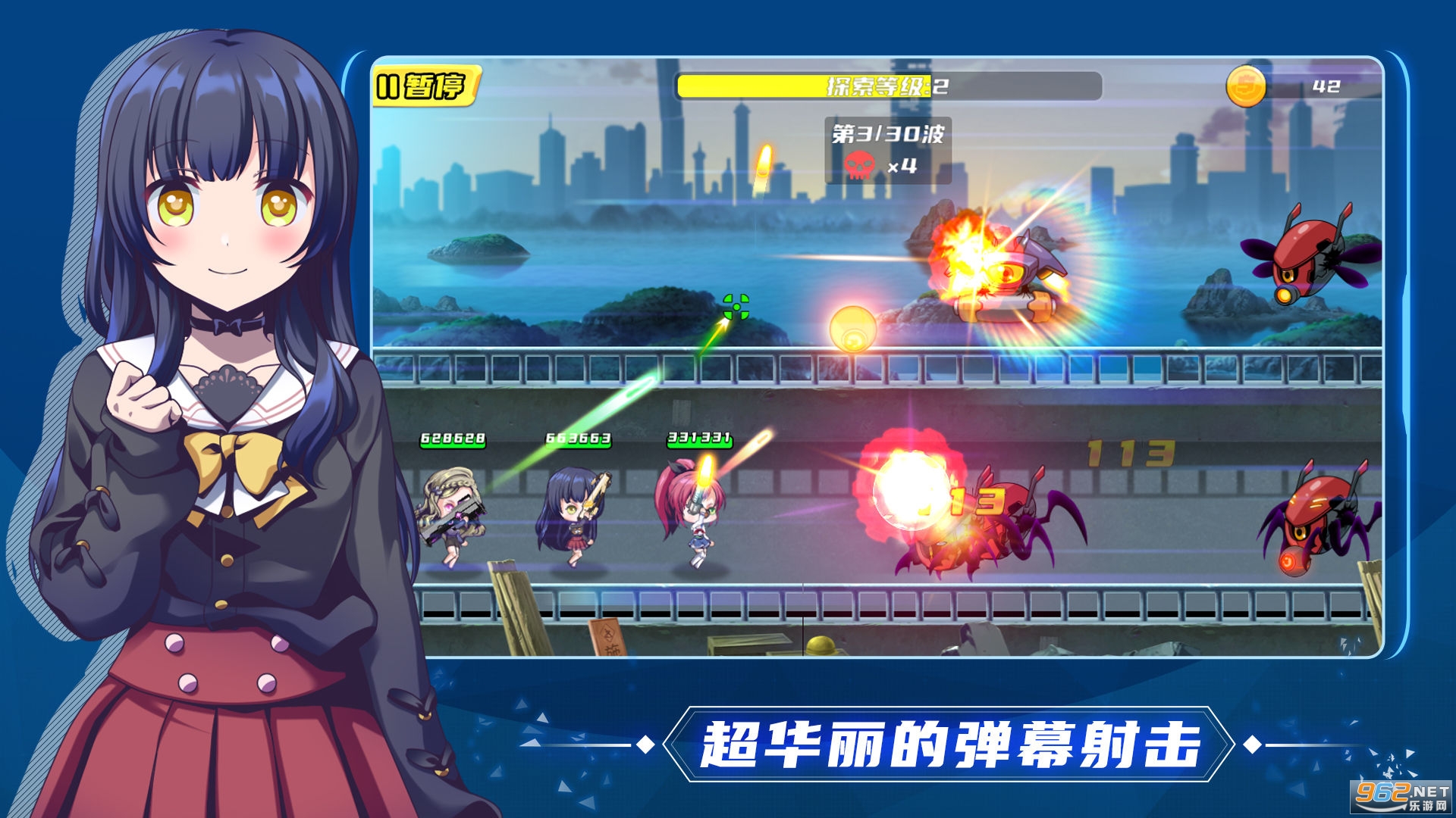 2、为玩家们带来了全新的一款横版射击闯关快感。个性十足的萌娘英雄角色自由养成;