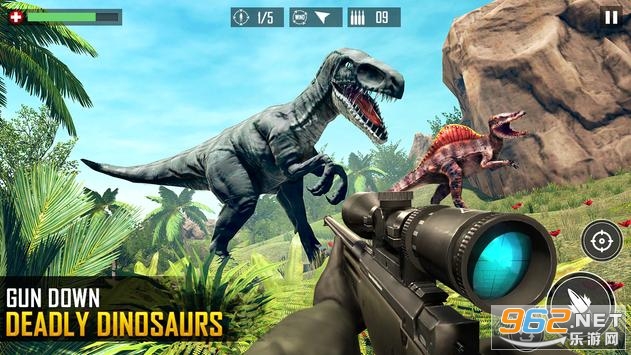 《Wild Dino Hunting Game》是一款野生恐龙狩猎游戏,有着逼真的狙击手射击体验,玩法简单有趣,高效的狙击射击枪控制,图画精致,找到森林里的最佳位置来进行瞄准射击,来展示你的无双枪法吧。