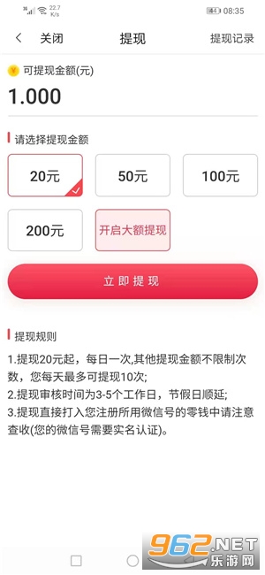 3、大风资讯永久满20元起提现到,每天可提现多次,申请提现24小时内到账