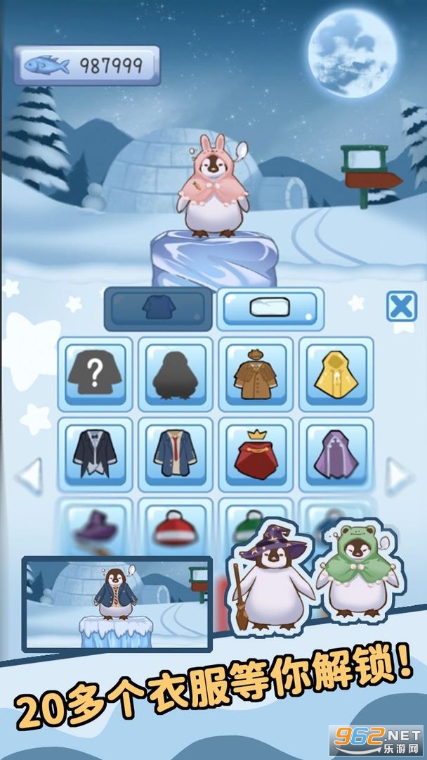 帮助你的企鹅可以更换更多的衣服,享受每个不一样服装的可爱。
