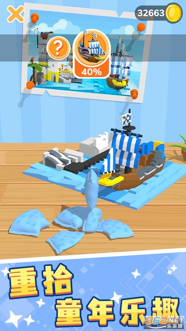 2、图片将给玩家带来深刻的现实感,有各种各样的小正方形,每个人都可以匹配来完成你的积木。