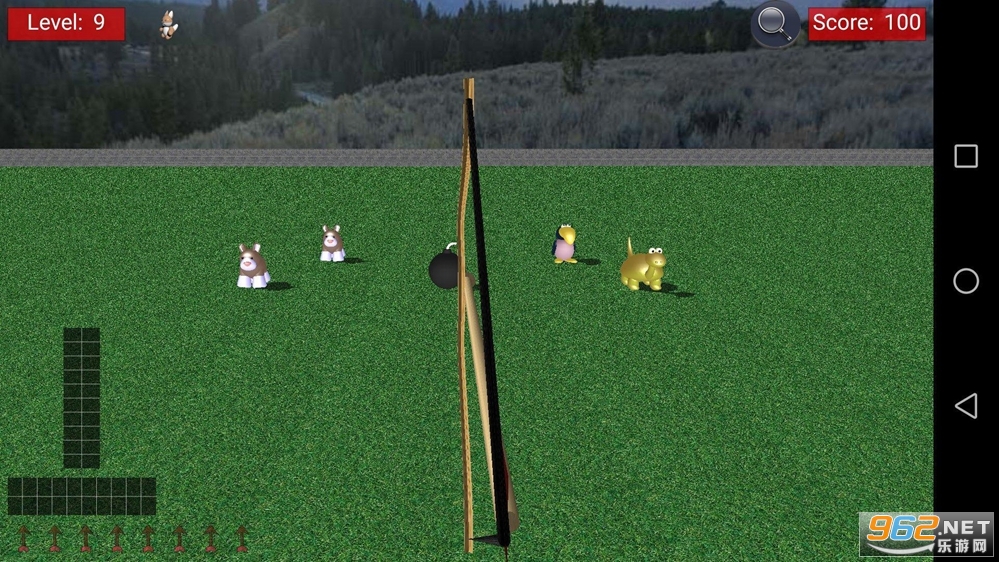 一款简单的3D射箭模拟游戏。在不同的场景中,瞄准玩偶射击,射中玩偶,您您就可以获得它。注意不要射中炸弹。