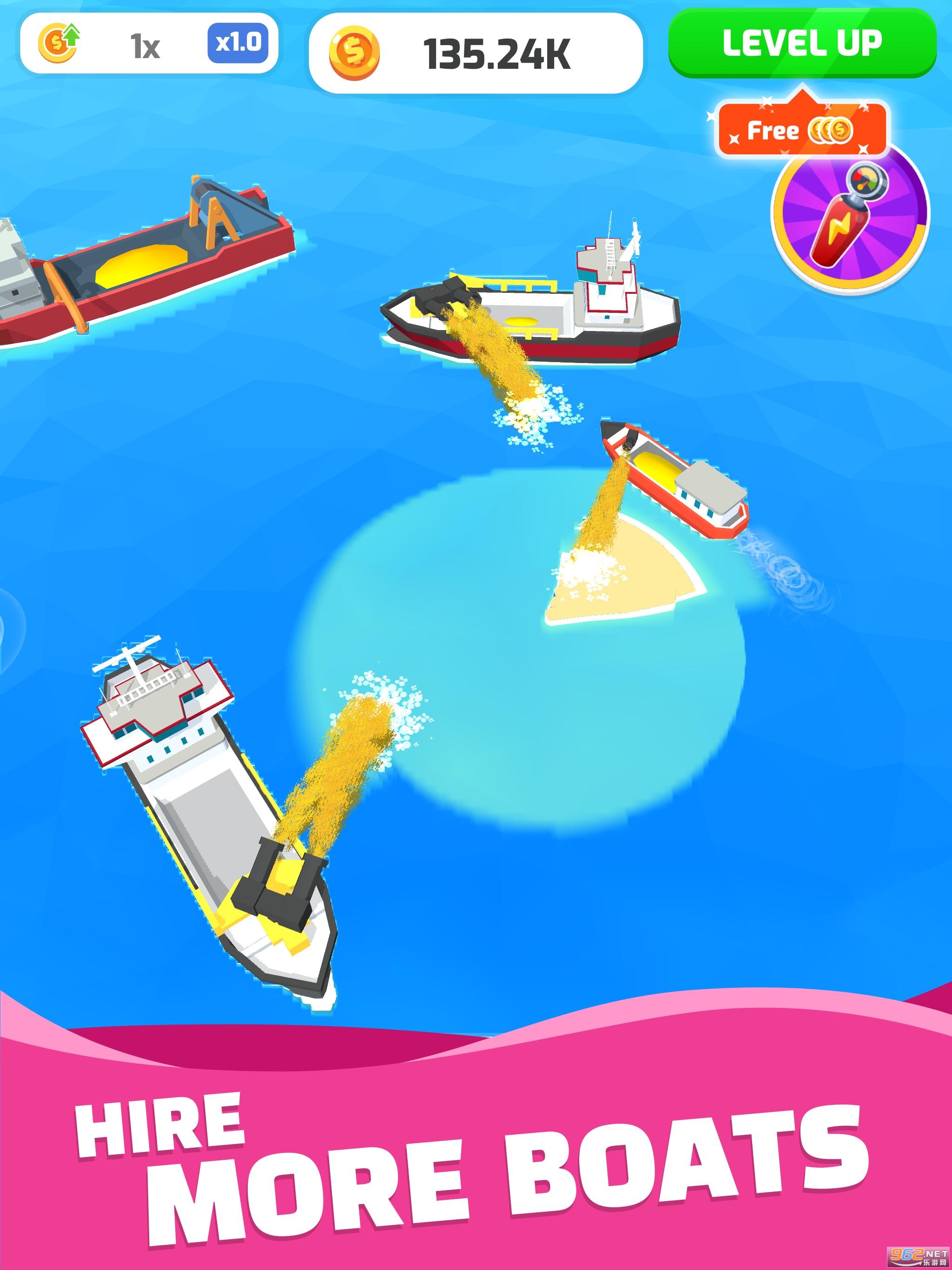 放松的同时,看着你的船顺利提取和爆炸沙子,以创造你的岛屿在海中。