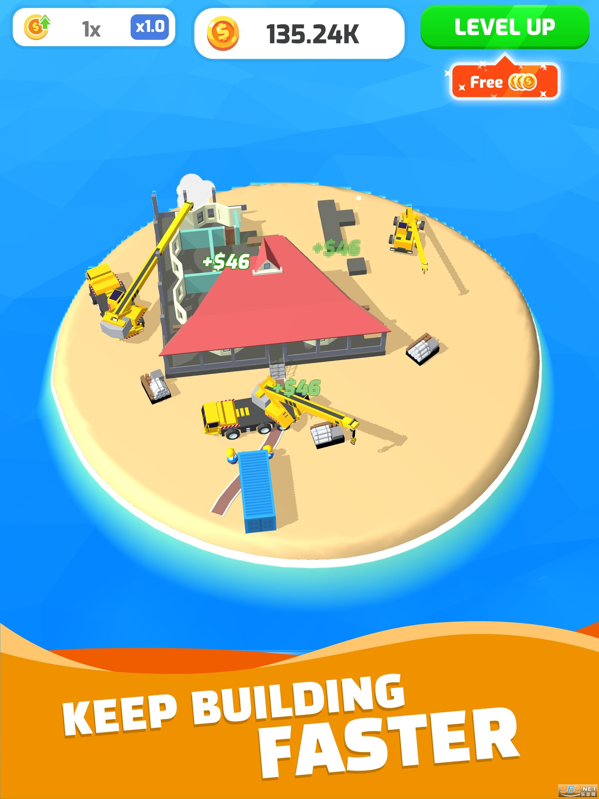 《Idle Island Inc》是一款清新卡通风格的岛屿建设模拟游戏,游戏中你甚至不需要有岛屿,直接通过填海造地来建设一座座建筑,游戏的操作简单容易上手,还有着多样的玩法和挑战等待着你,游戏的玩法轻松有趣,赶快下载体验吧!