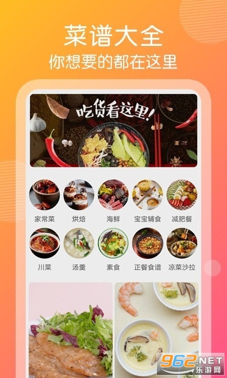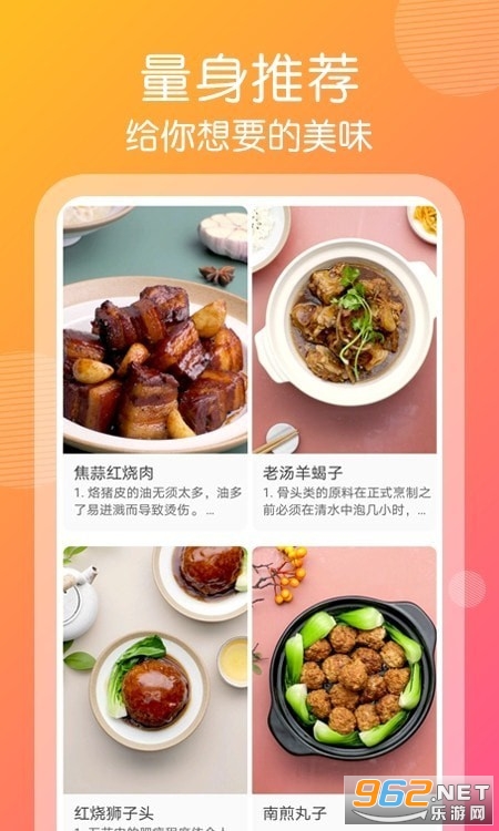 1.菜谱搜索:帮助你搜索和查找到相应的菜谱资源;