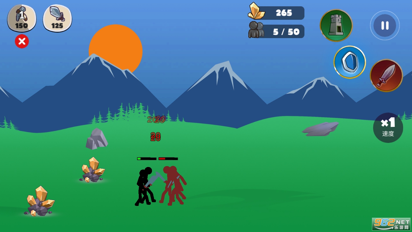 《火柴人遗产争霸战官方版》是一款非常有趣的,火柴人版战争策略类游戏,玩家在游戏中需要组建属于自己的火柴人军团来与敌方的火柴人进行战斗的,胜利的一方可以掠夺对面火柴人的矿产和资源。玩家要合理分配战士火柴人和挖矿火柴人,不然可能因为资源问题导致最后主城被敌方攻克,而导致玩家游戏走向失败。