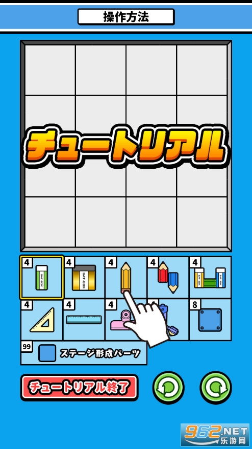 规则很简单!用文具填充所有准备好的正方形,以清除它们!