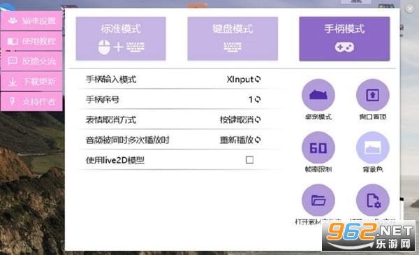 2.在打开的UI面板中选择猫咪显示模式,并点击【窗口置顶】即可将猫咪置顶在您的画面上;