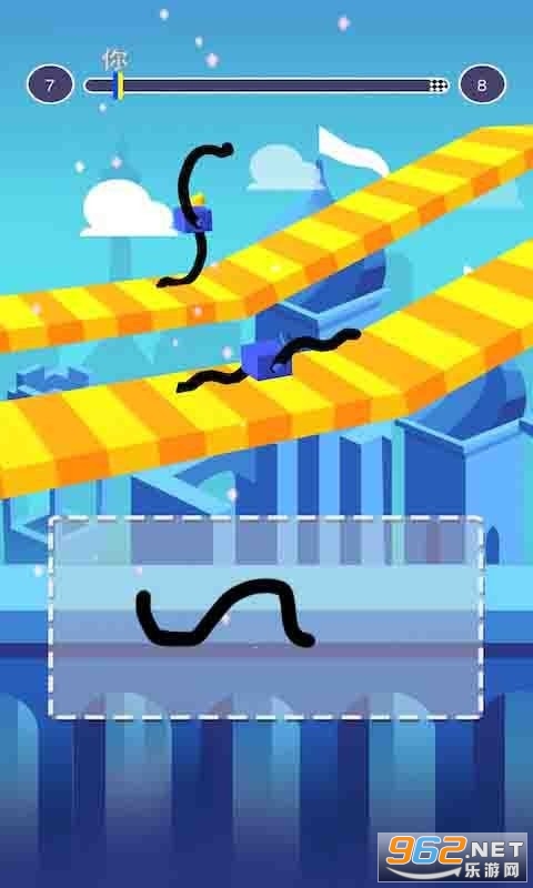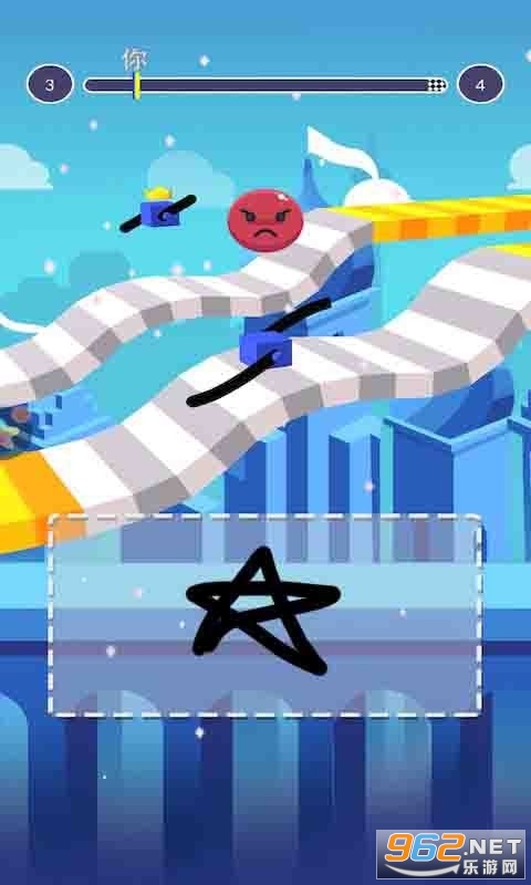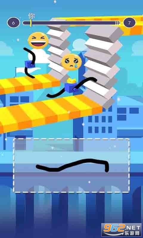 2、用手指绘画出合适的手脚帮助方块人可以通过不同的路况,获取更高的分数;