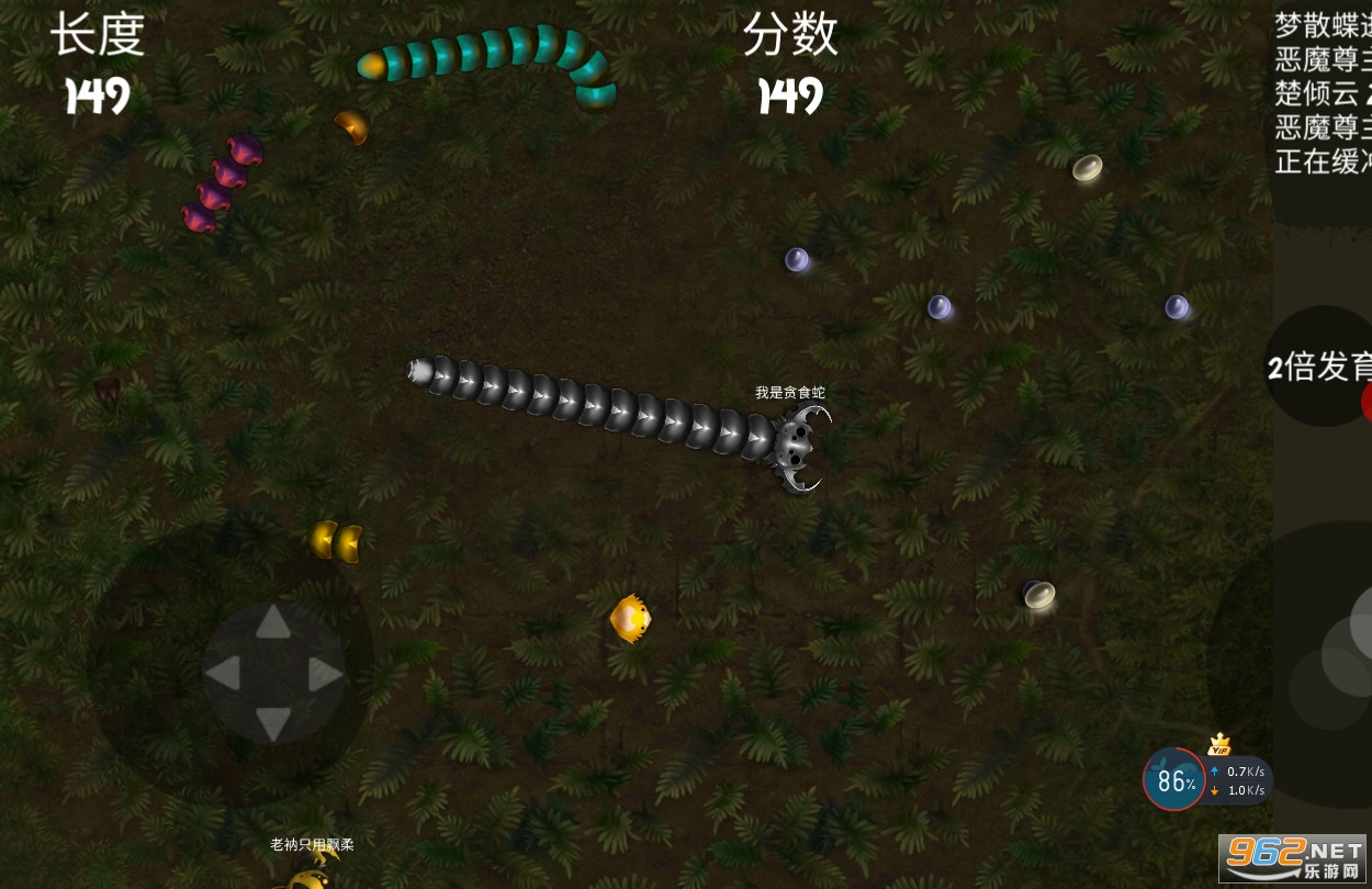 2、还可以吞食掉容积比自身小的蛇的头部,将其消灭;