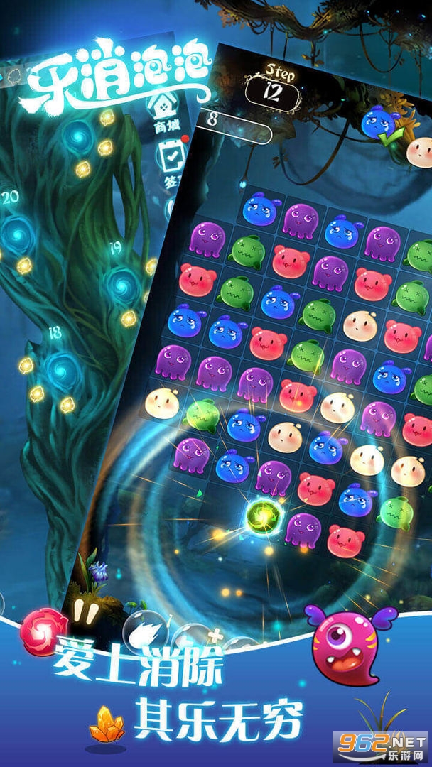 《乐消泡泡安卓版》是一款消消乐玩法的单机手游,玩家需要利用消消乐来为史莱姆们清除病毒,让史莱姆森林重新焕发青春,游戏过程轻松悠闲,游戏操作简单易上手,推荐给喜欢消消乐玩法的小伙伴,喜欢就快来下载吧。