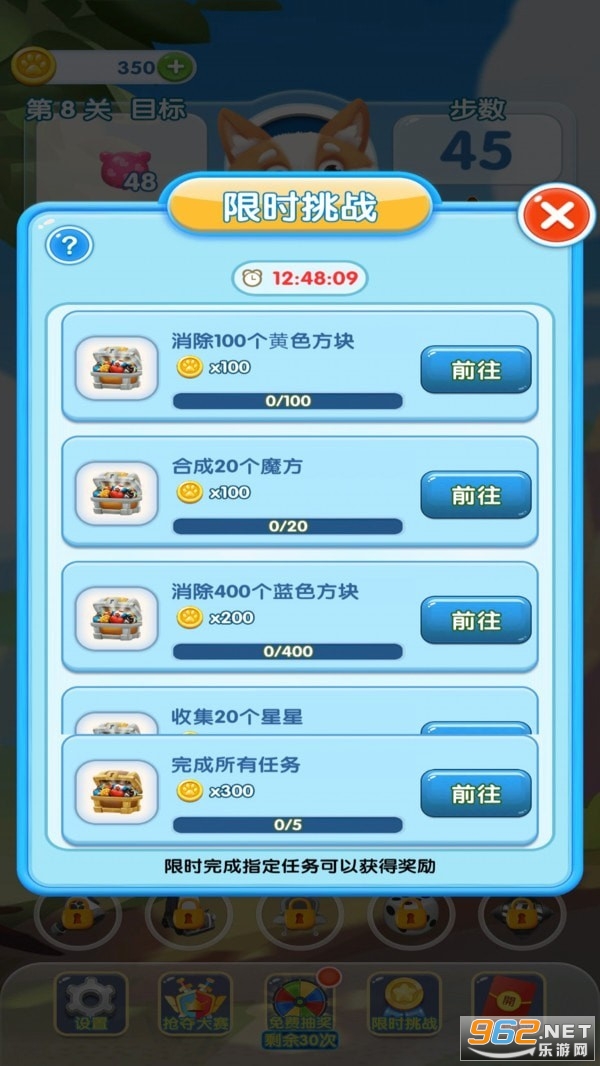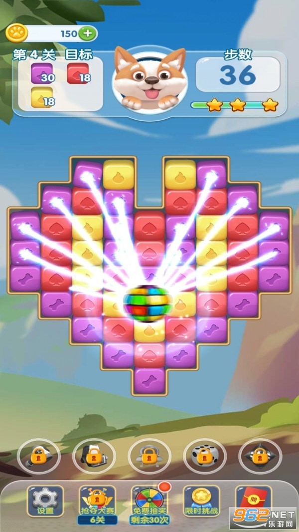 自由设计的关卡挑战可以让你释放你的创造力,并消除相邻的目标。