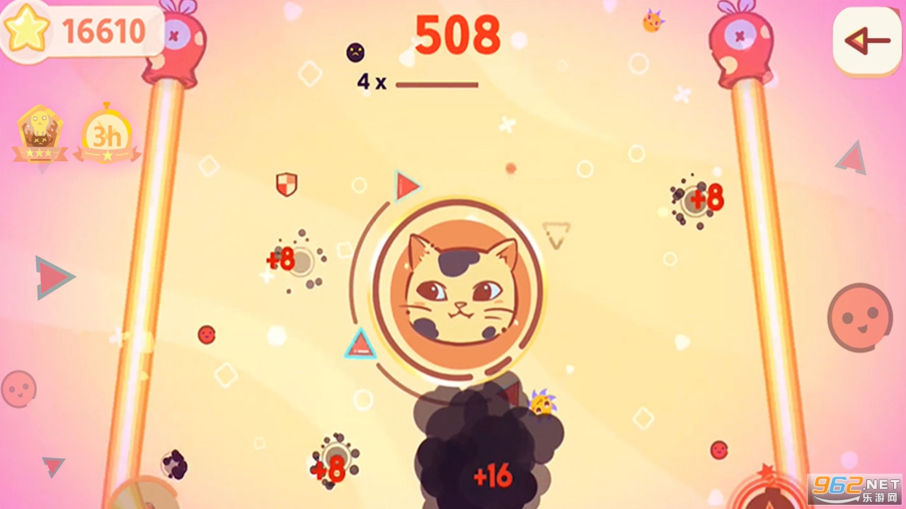 点击屏幕控制猫猫的旋转,合理利用你的防御。