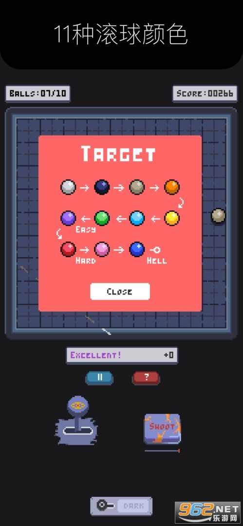 拥有十多种解谜模式和不同的场景,分布的球的颜色也是不相同的,只能观察寻找规律。