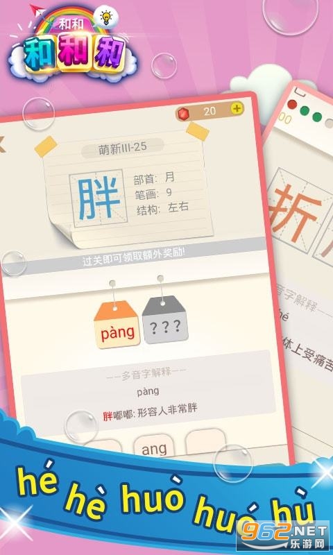 《和和和和和手游》是一款以汉字为核心的游戏,玩家只需要给对应的汉字标上拼音即可,但是汉字的多音字非常多也非常难认,一个字的意思在不同的词语或句子中有非常多不同的意思,快来挑战挑战自己,喜欢就快来下载吧。