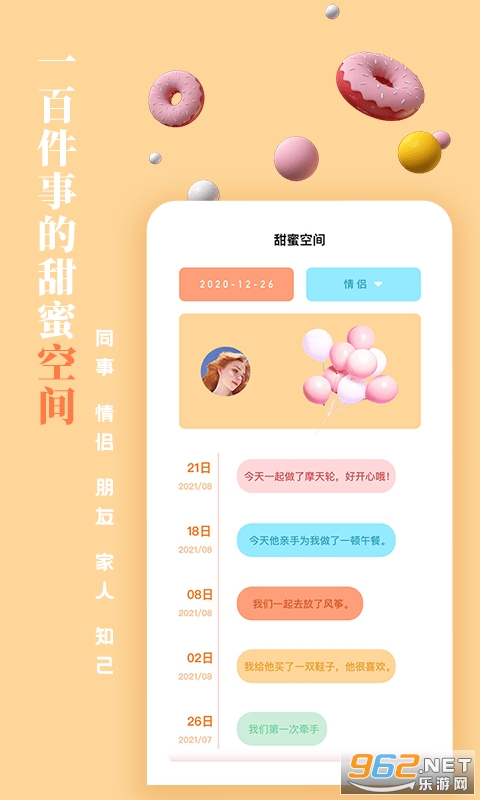 00件小事app是一个准们为情侣设计的一款计天数的软件,它可以帮助你计算恋爱的天数,并提醒你即将到来的周年纪念日,100件小事app记录美丽的爱情细节,让你不会错过每一个难忘的时刻,如果你有男朋友或者女朋友快来这里记录你们的美好时刻吧,把每一个美好的瞬间记录下来还是很有意义的。
