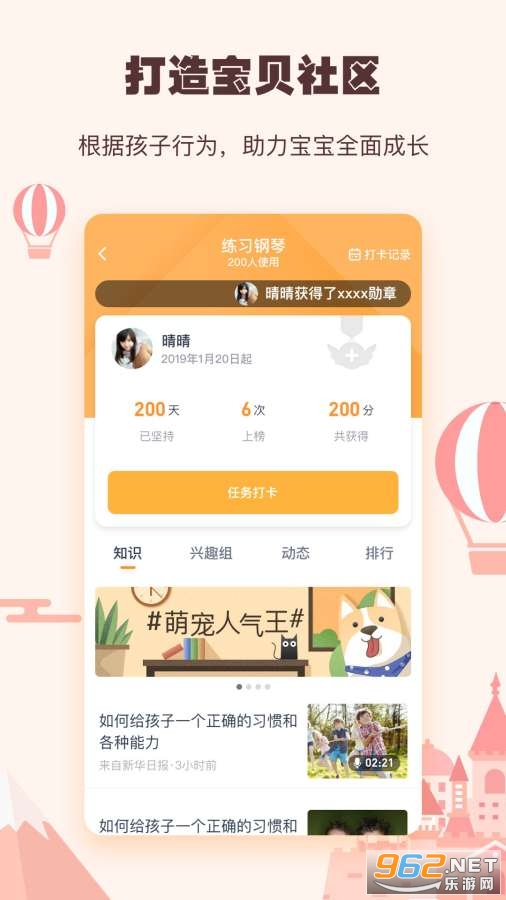一款非常有趣的育儿教育软件,通过这款软件来记录你的孩子的点点滴滴,遵守和孩子的一个个小约定,软件的操作简单容易上手,还有着一定的社交功能,推荐给有需要的用户。