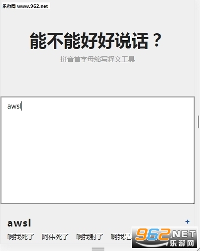 这也其实是一个专门的拼音首字母缩写工具,输入你想要查询的内容,马上就会出现结果。