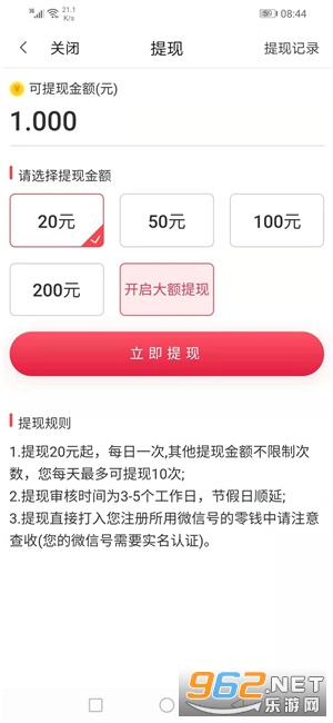 3、金豆网永久满20元可提现到,申请提现会在24小时内到账,每天最多可提现10次