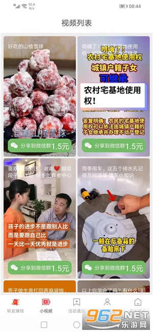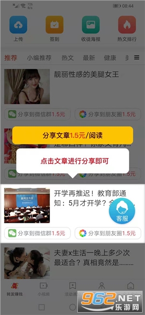 2、登录成功后,点击“转发赚钱”或“小视频”选择感兴趣的文章/视频转发到,被阅读即可获得相对应的转发酬劳