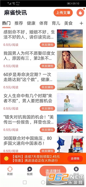 3、麻雀快讯转发平台门槛低、不封号,文章绿色并且支持上传文章,包你爽到停不下来,下载狂赚吧