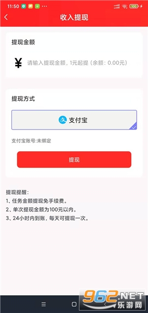 3、赏帮赚收益满1元起即可提现,单次最大可提100元,支付宝秒到账,每天可提现一次